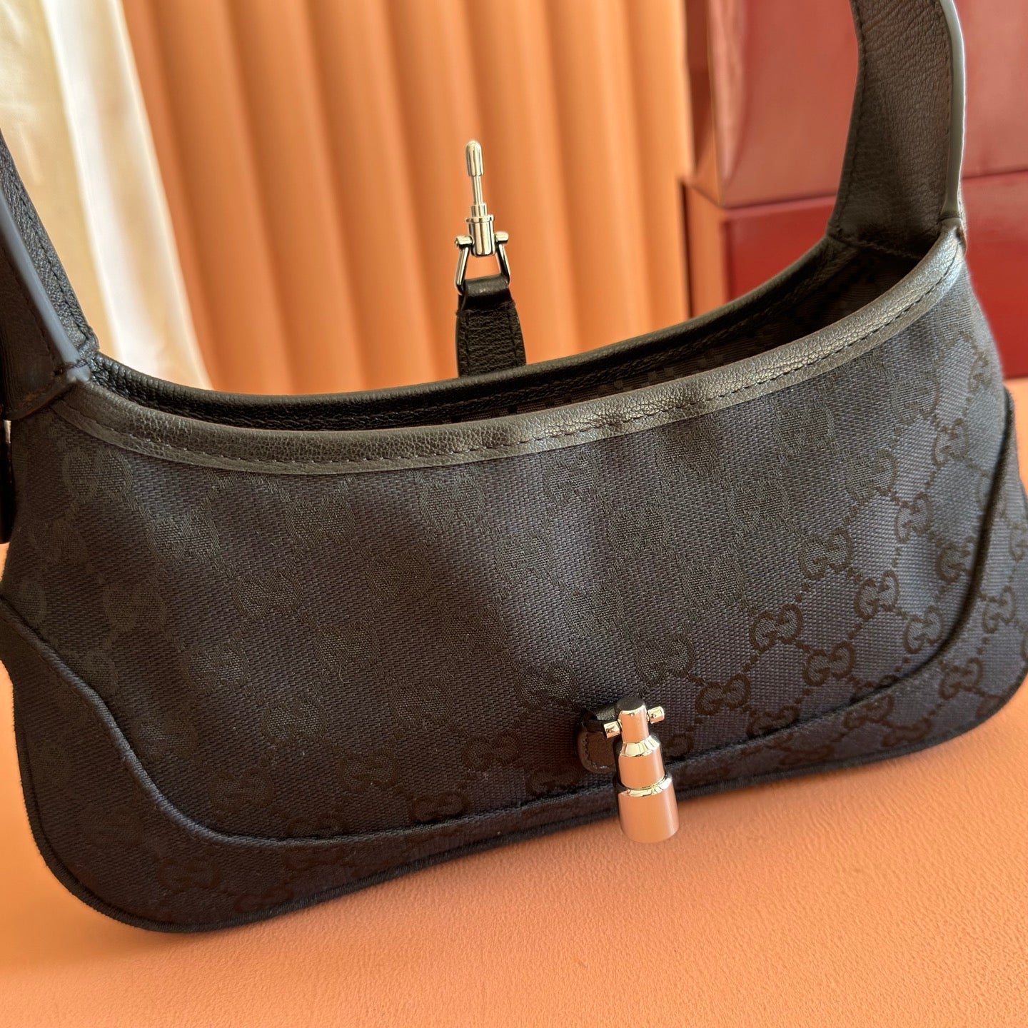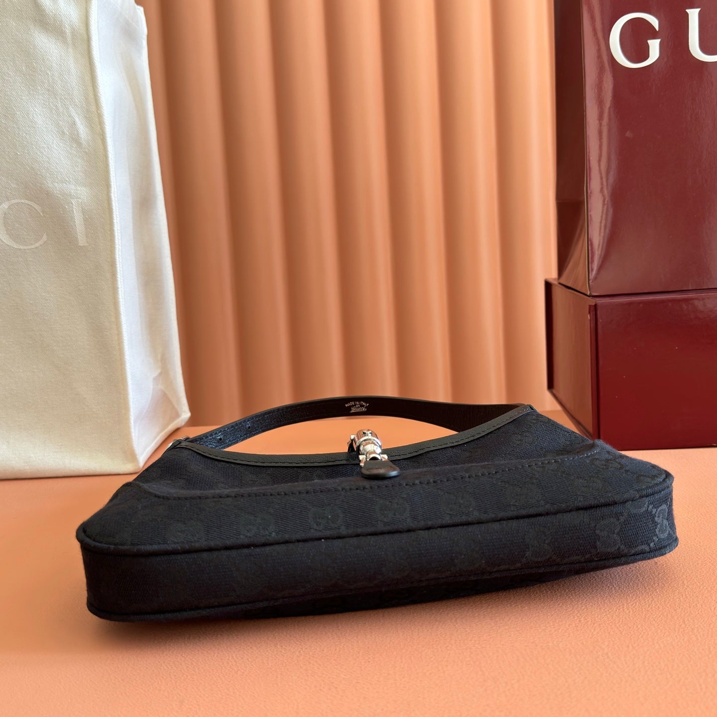 GUCCI 26S JACKIE SLIM SHOULDER BAG 27 IN BLACK CANVAS