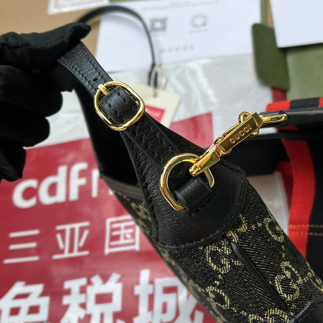 JACKIE 1961 SMALL HANDBAG 19 IN BLACK YELLOW DENIM AND BLACK CALFSKIN TRIM GOLD HARDWARE