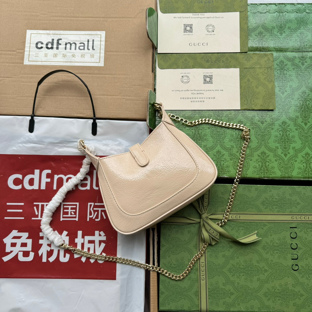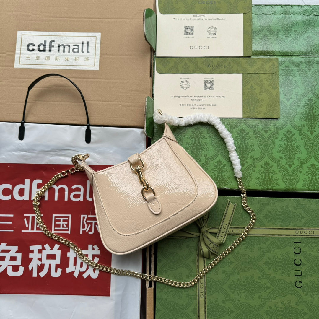 JACKIE NOTTE MINI BAG 19 IN BEIGE CRACKED LACQUER CALFSKIN GOLD HARDWARE