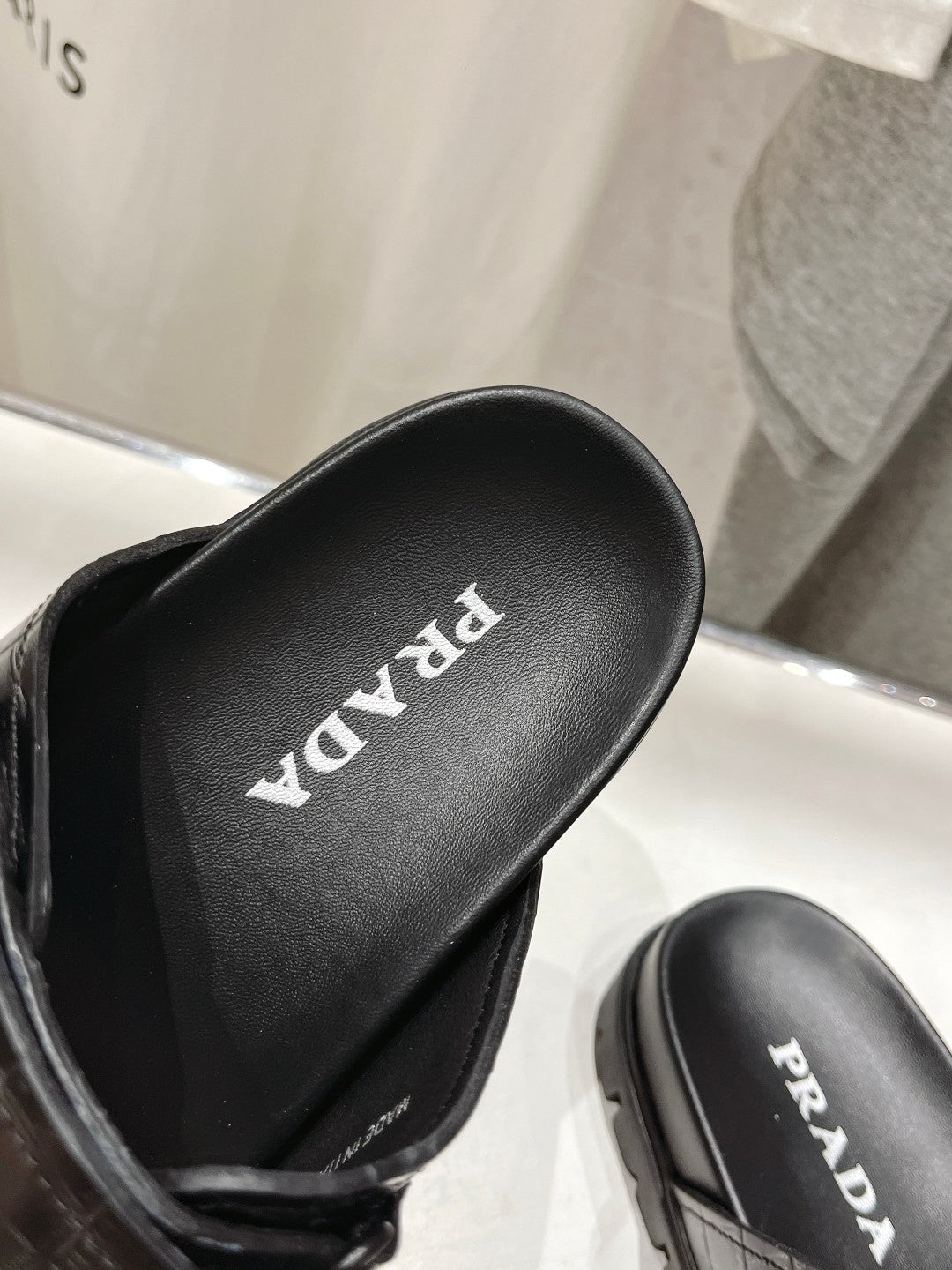 PRA CROCODILE LEATHER MOTIF SANDALS BLACK CALFSKIN