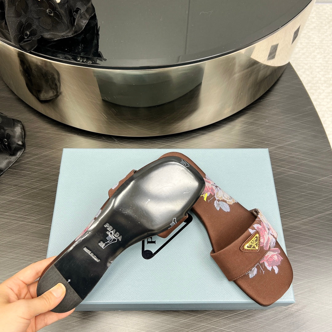 PRA PRINTED SLIDES SLIPPERS CINNAMON SATIN