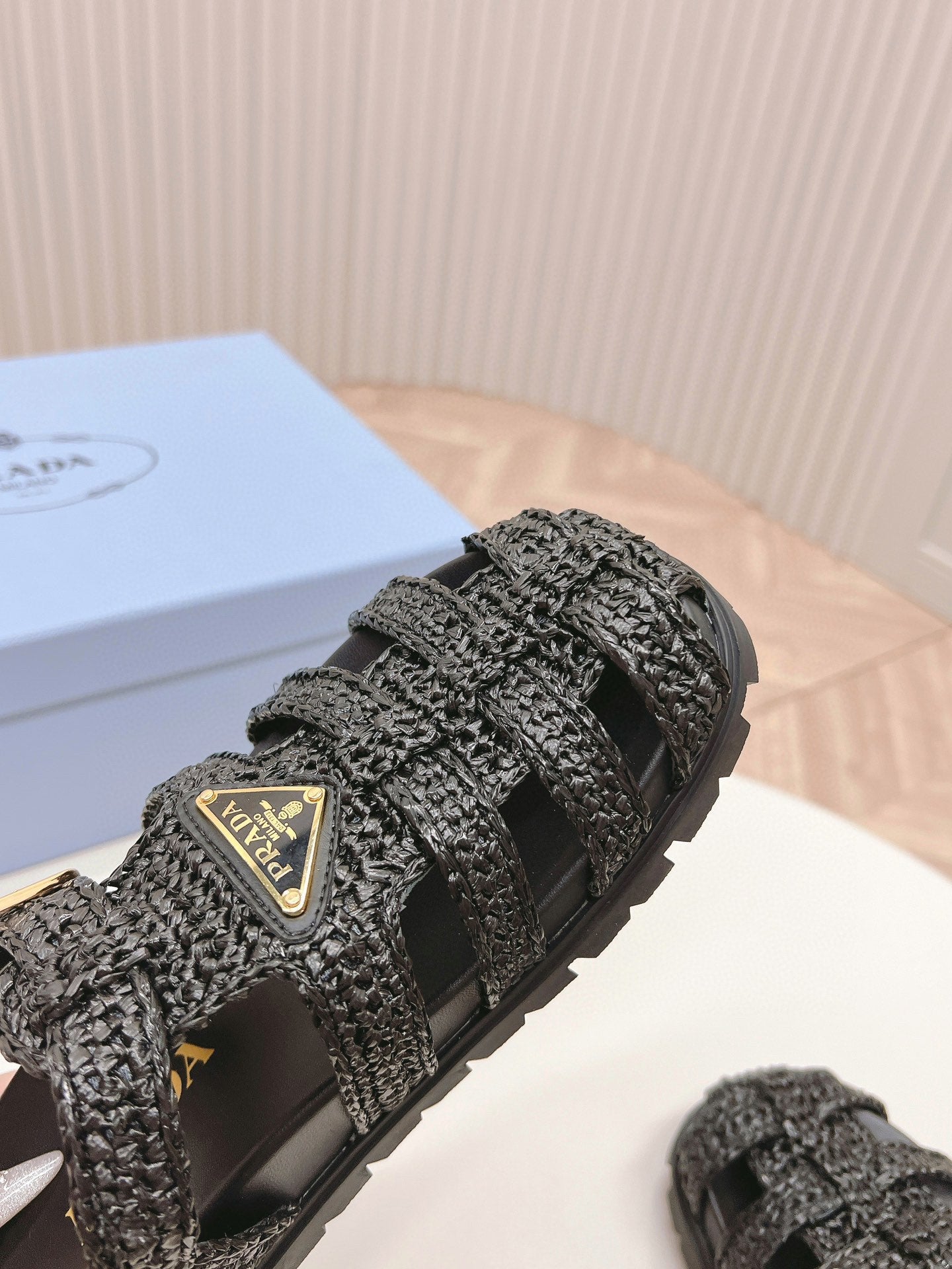 PRA RUBBER FISHERMAN SANDALS BLACK LAMBSKIN