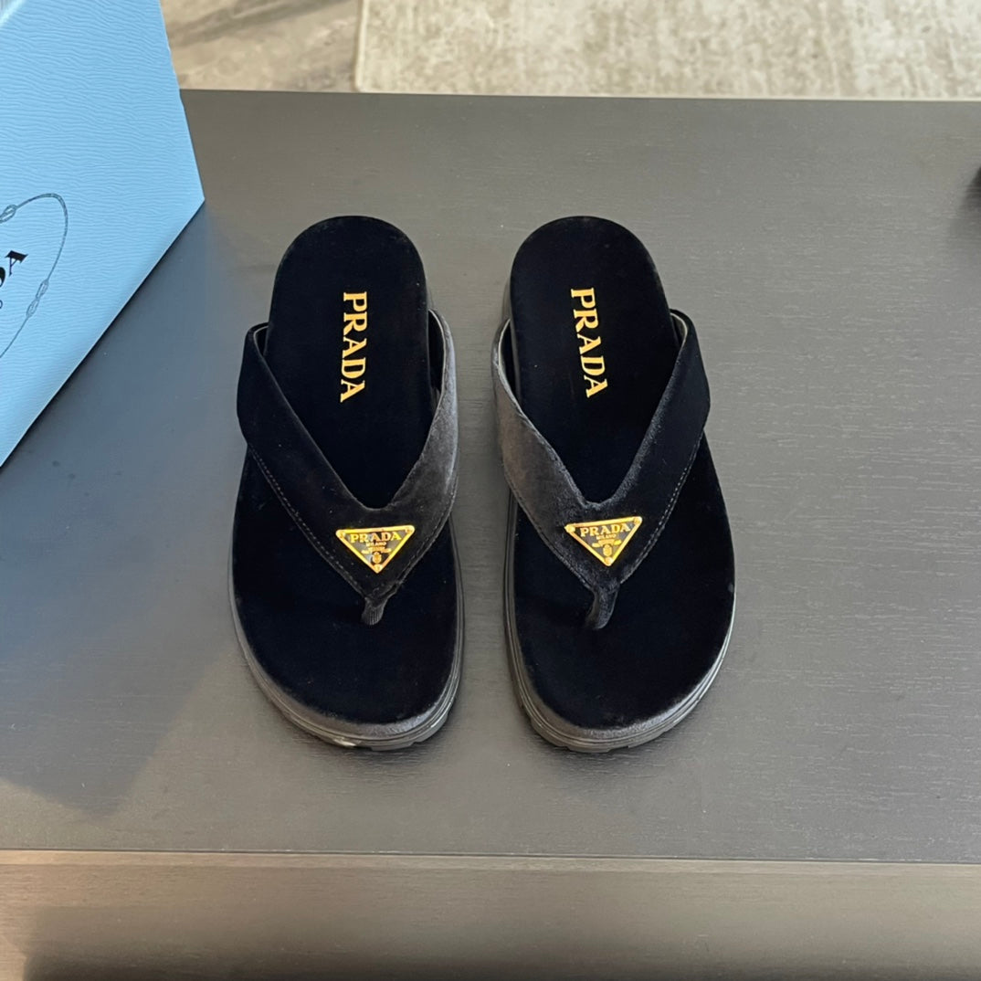 PRA RUBBER THONG SANDALS BLACK VELVET