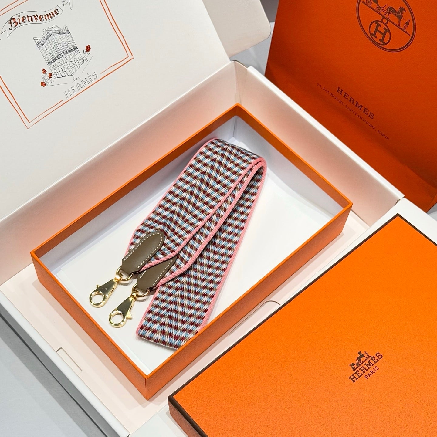 25S HERMES BAG STRAP GREEN AND PINK PATTERN 85 IN CANVAS GOLD HARDWARE
