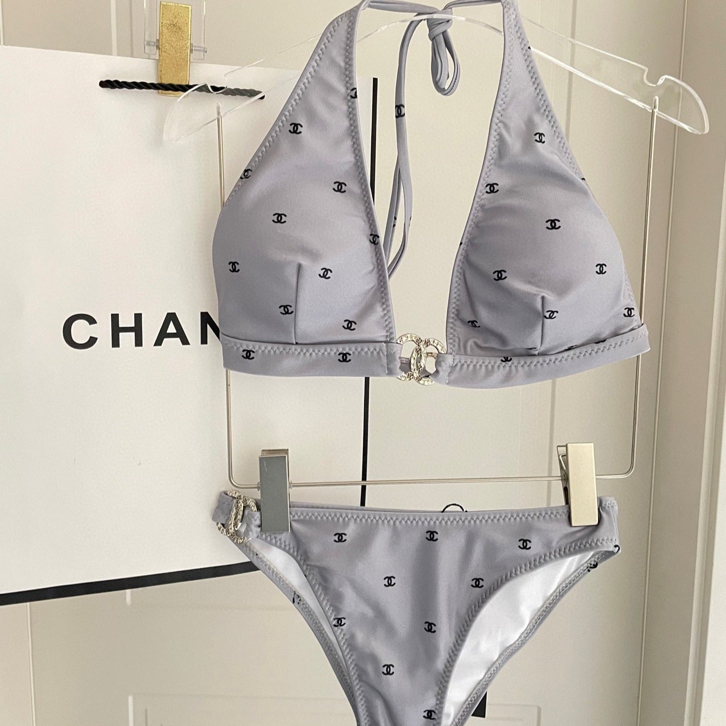 CC BIKINI SWIMSUIT SET IN GREY AND BLACK LOGO 599155