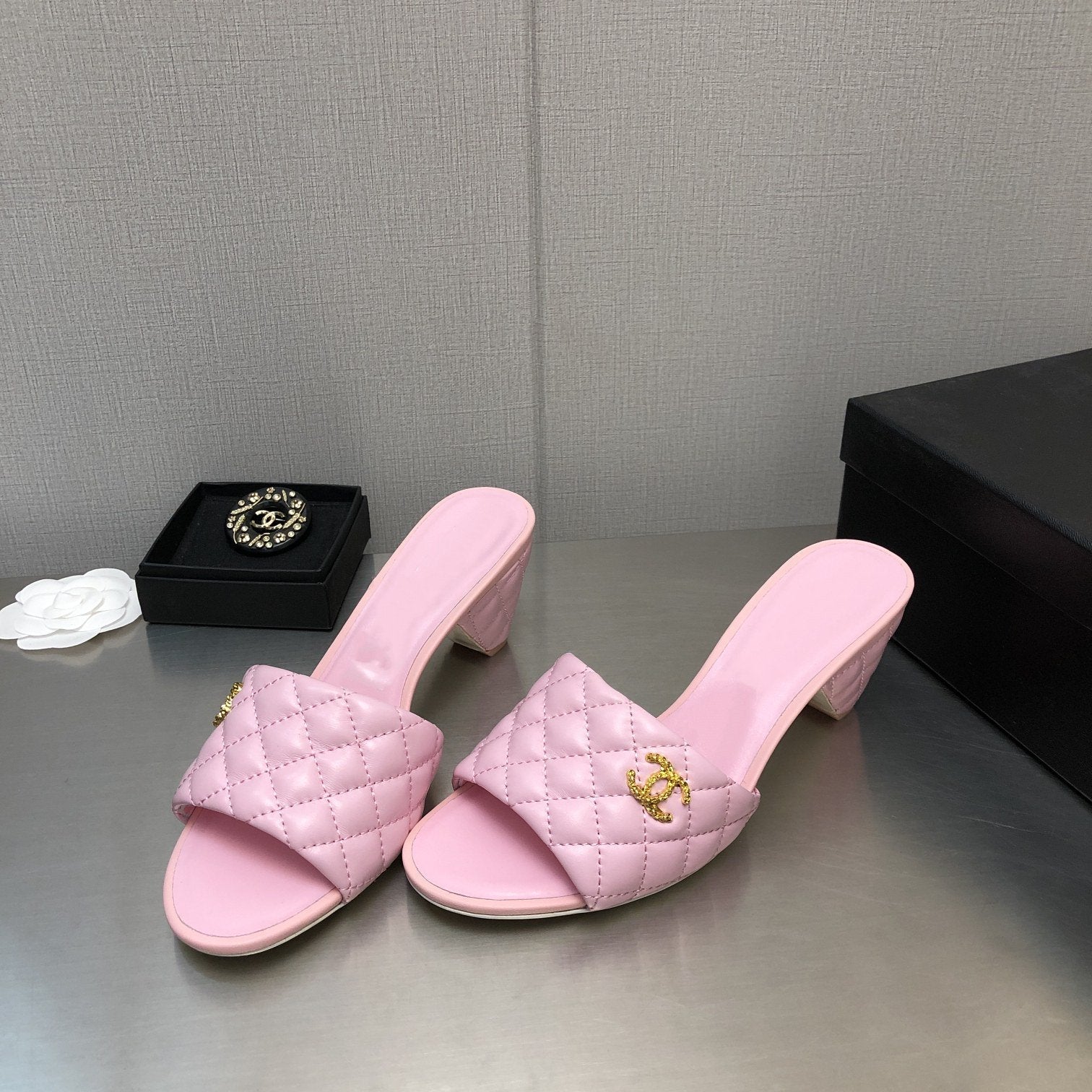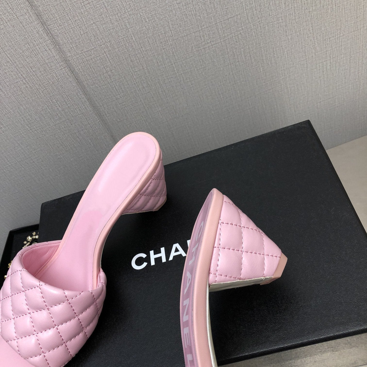 cc rev cone heel mule slide sandal pink quilted lambskin 6cm