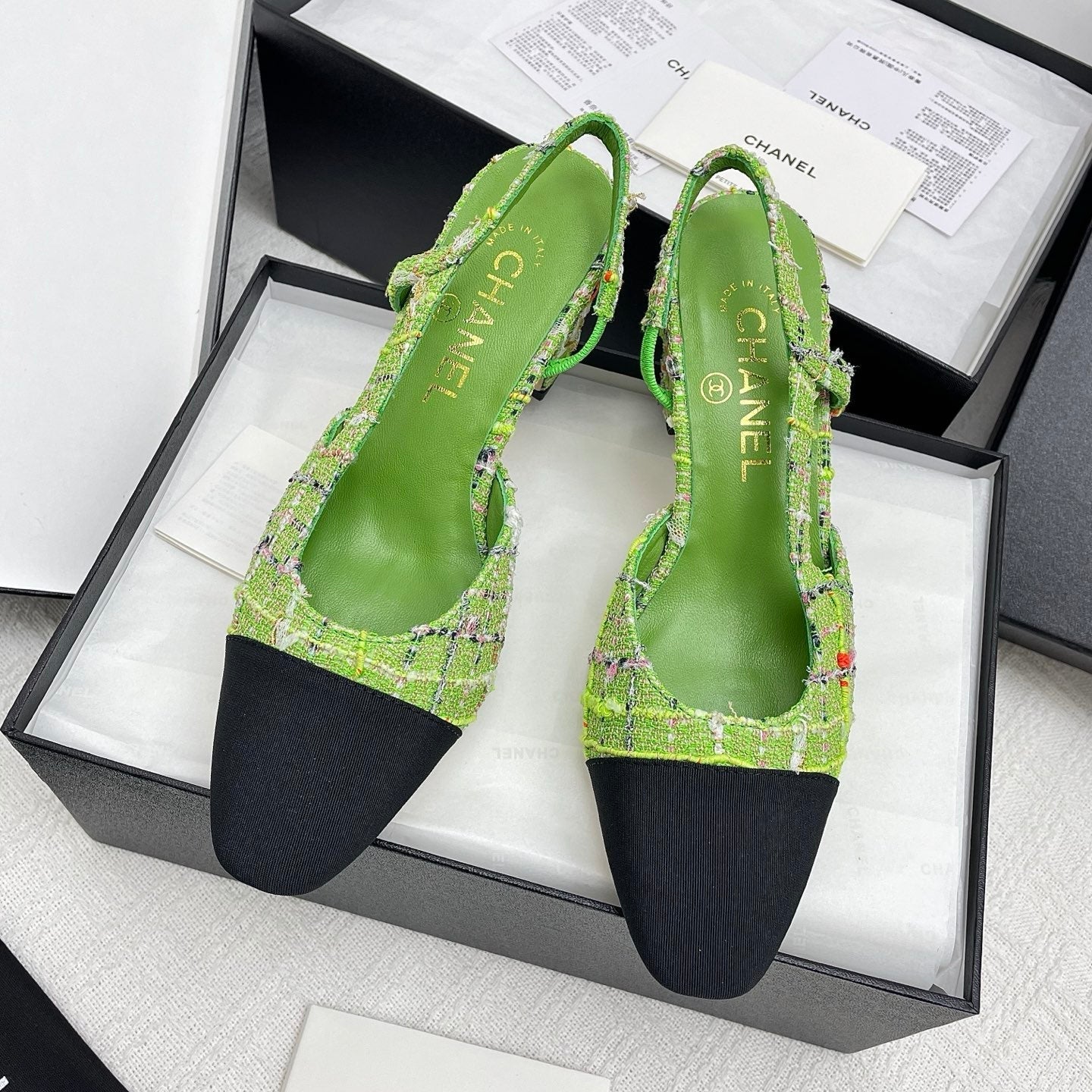CC SLINGBACK 25S 65 MM IN GREEN FABRIC MIX TWEED