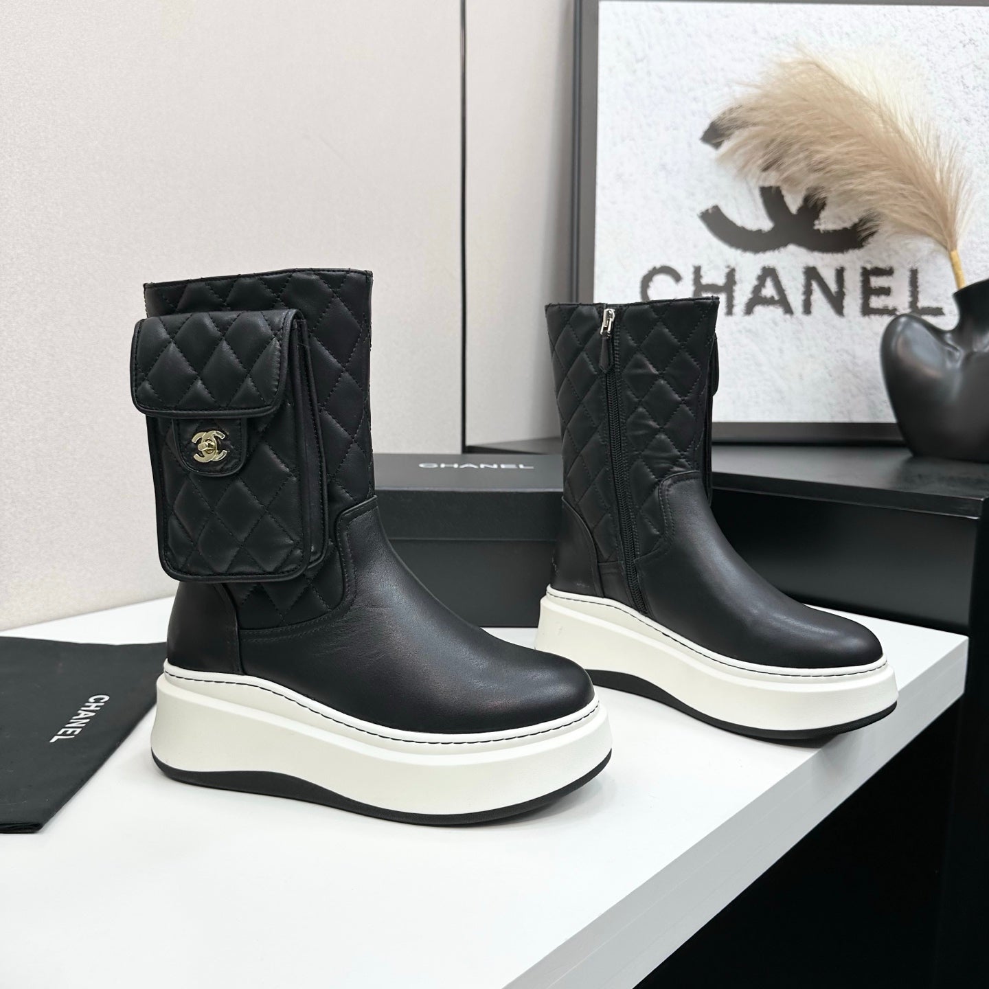 CHANEL 25S WEDGE ANKLE BOOTS IN BLACK CALFSKIN SILVER HARDWRE