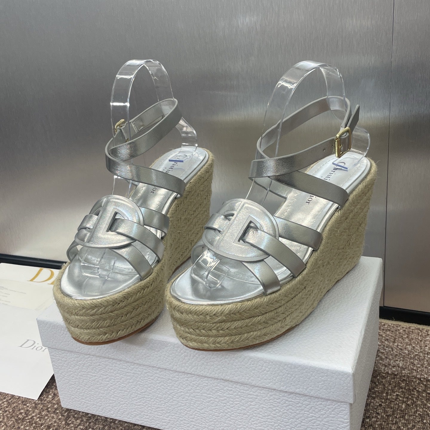D-CLUB 25S HIGH HEEL WEDGE 100MM IN SILVER GLOSSY CALFSKIN RAFFIA SOLE