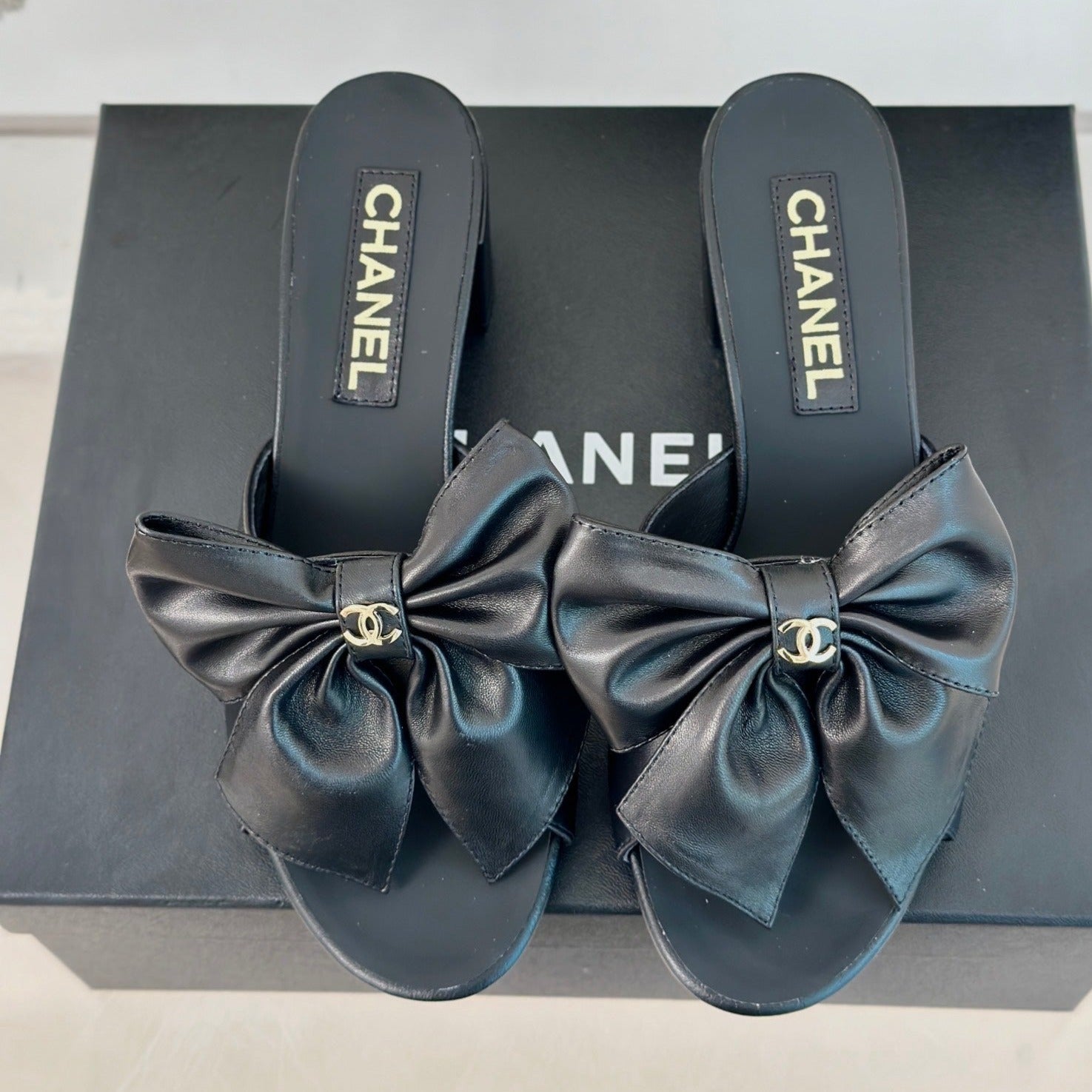 Double CC Big Bow High Heels Sheepskin Black