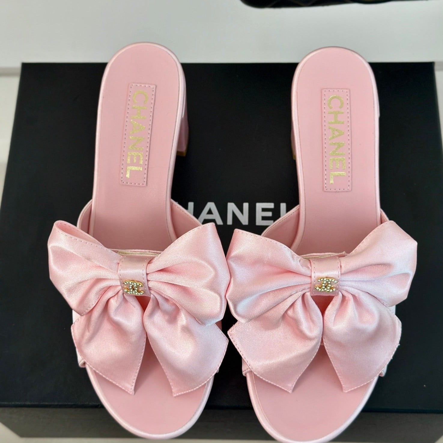 Double CC Big Bow High Heels Sheepskin Light Pink
