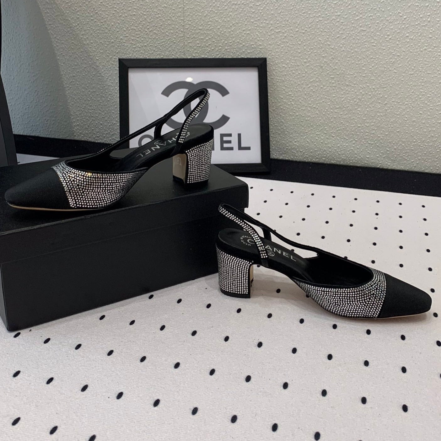 Double CC Rhinestone Slingback Sheepskin Silver Black