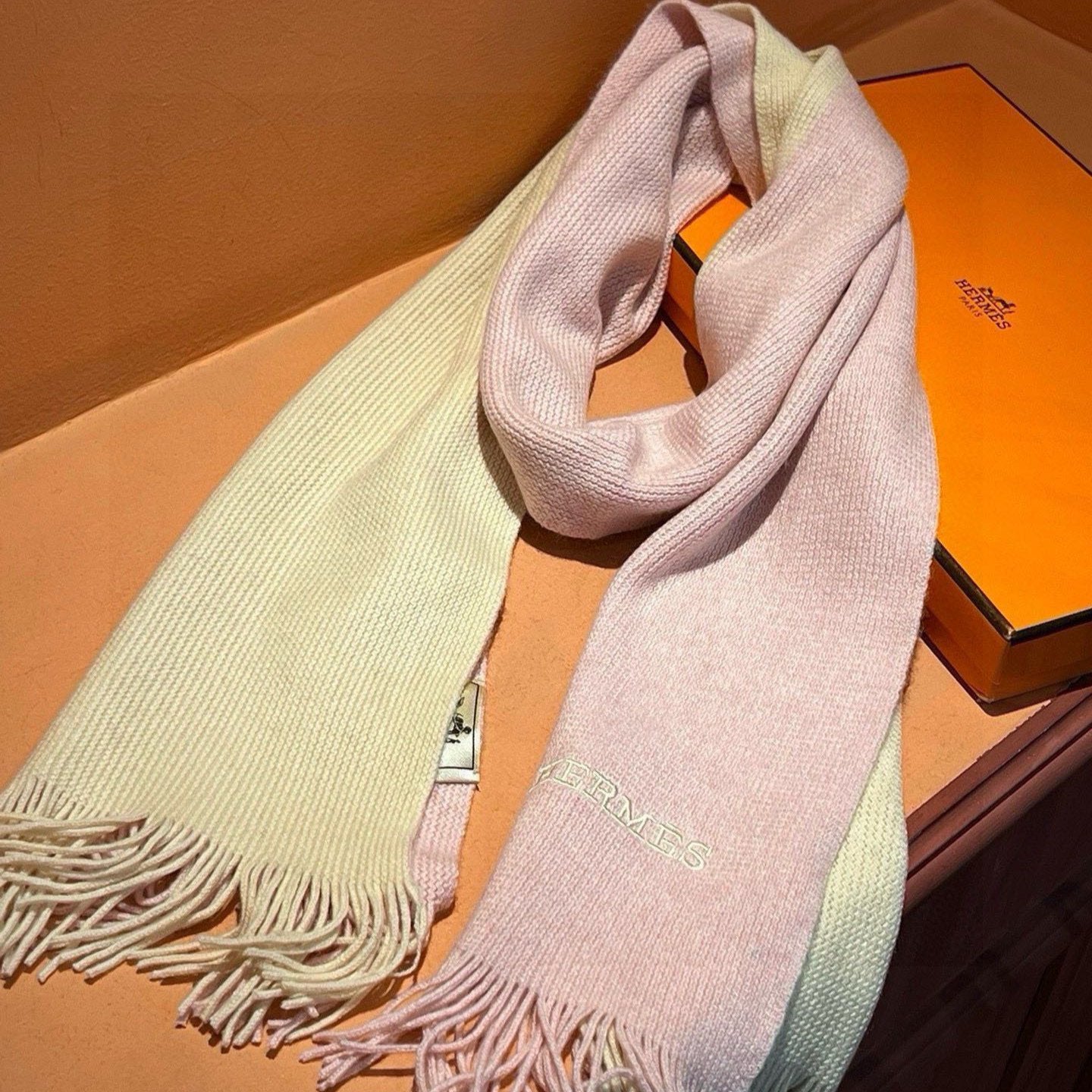 HIGH-END SCARF 180 IN LIGHT PINK MIX BEIGE CASHMERE