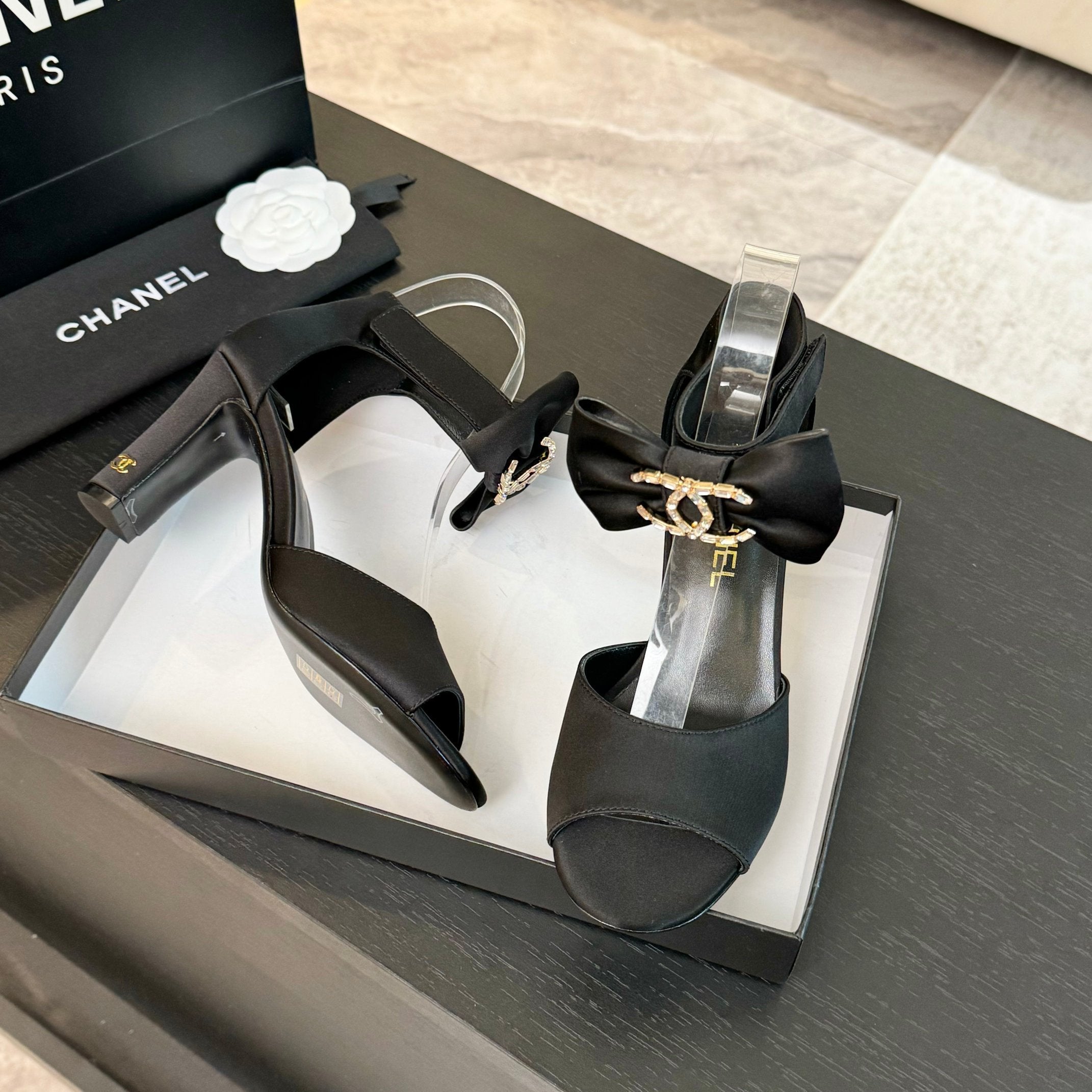 HIGH SANDAL OPEN TOE IN BLACK SATIN