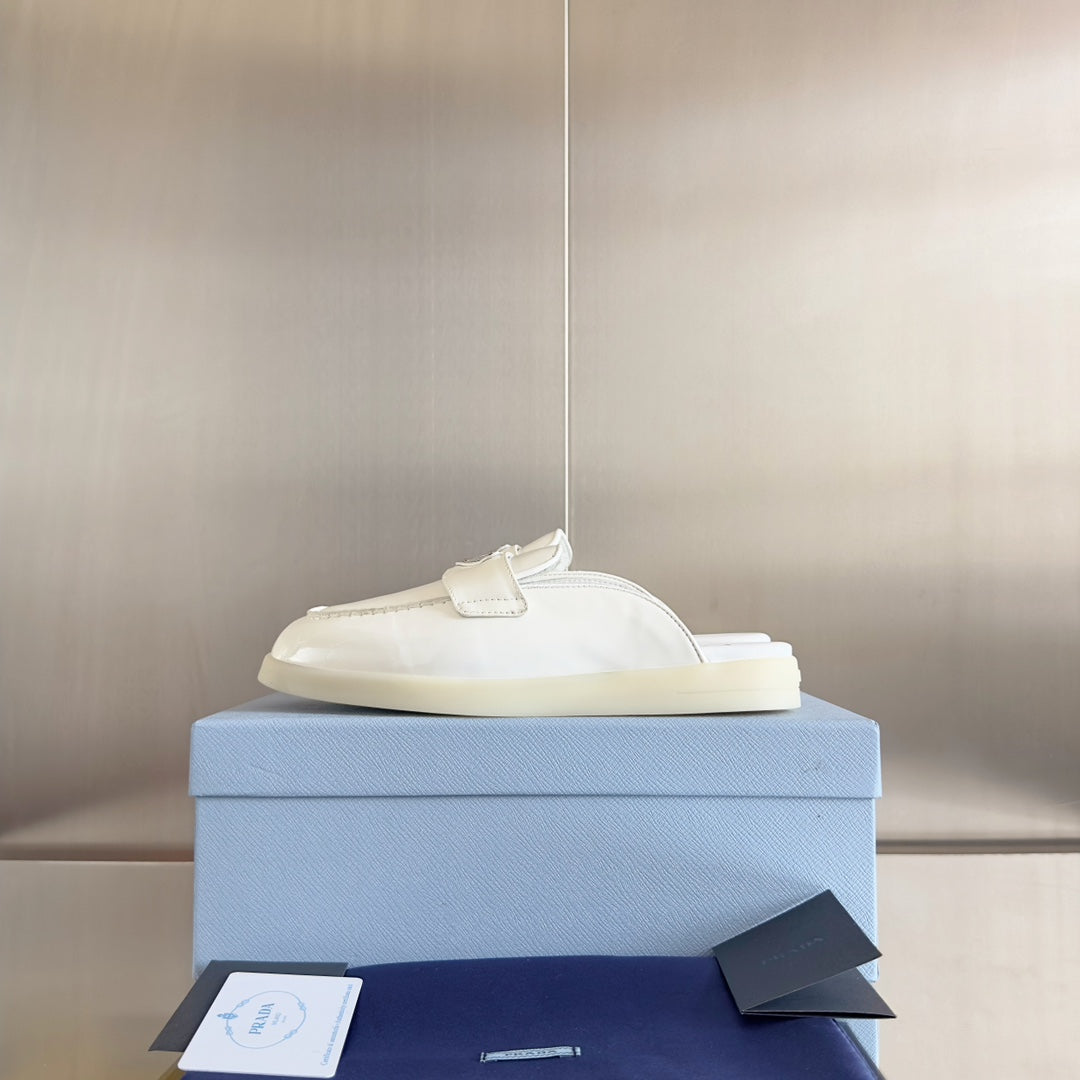 Pra White Patent Leather Mule 25mm Rubber Sole