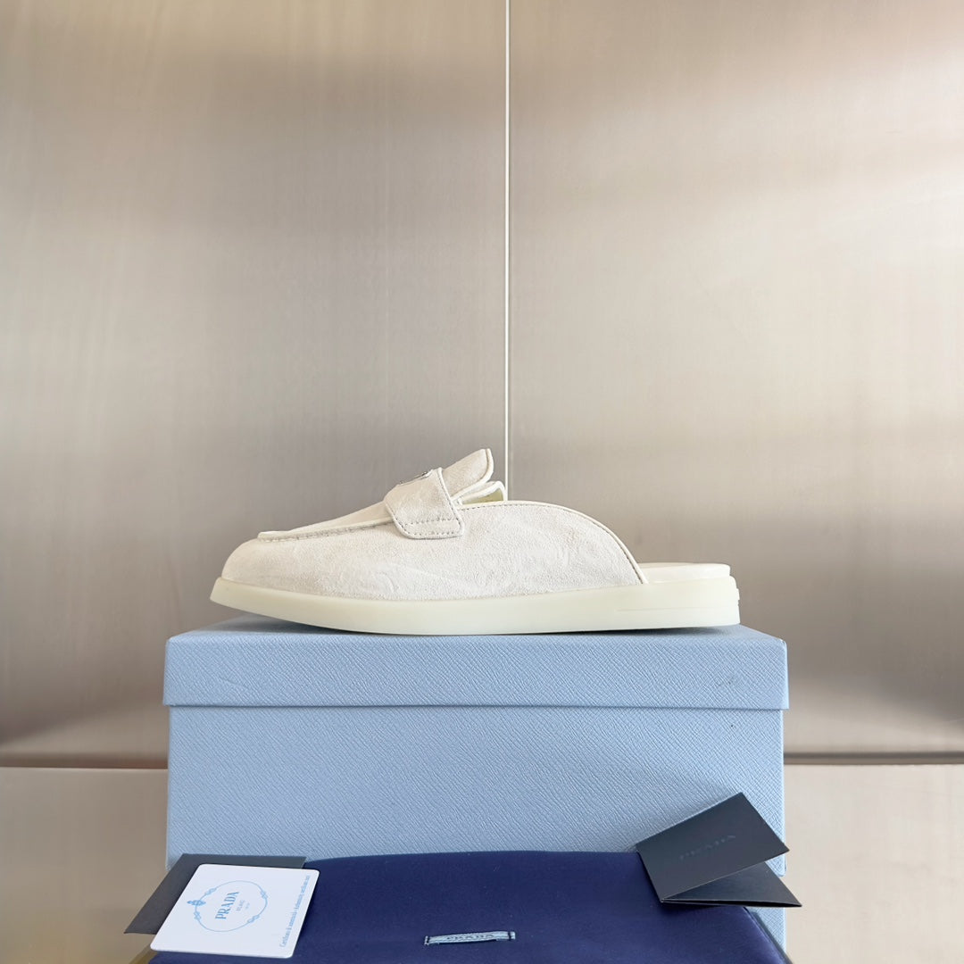 Pra White Suede Leather Mule 25mm Rubber Sole