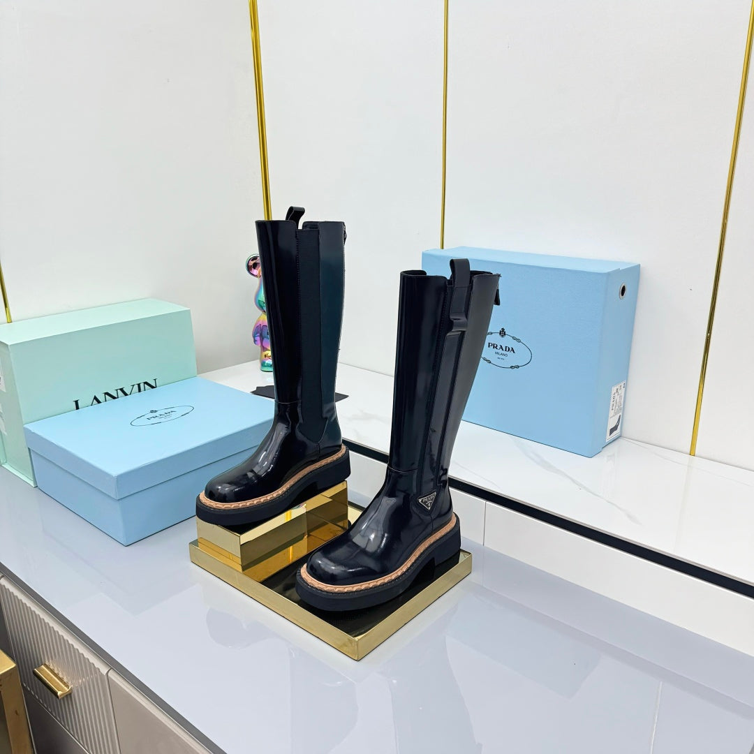 PRADA 25S TALL CHELSEA BOOTS 50MM IN BLACK GLOSSY CALFSKIN