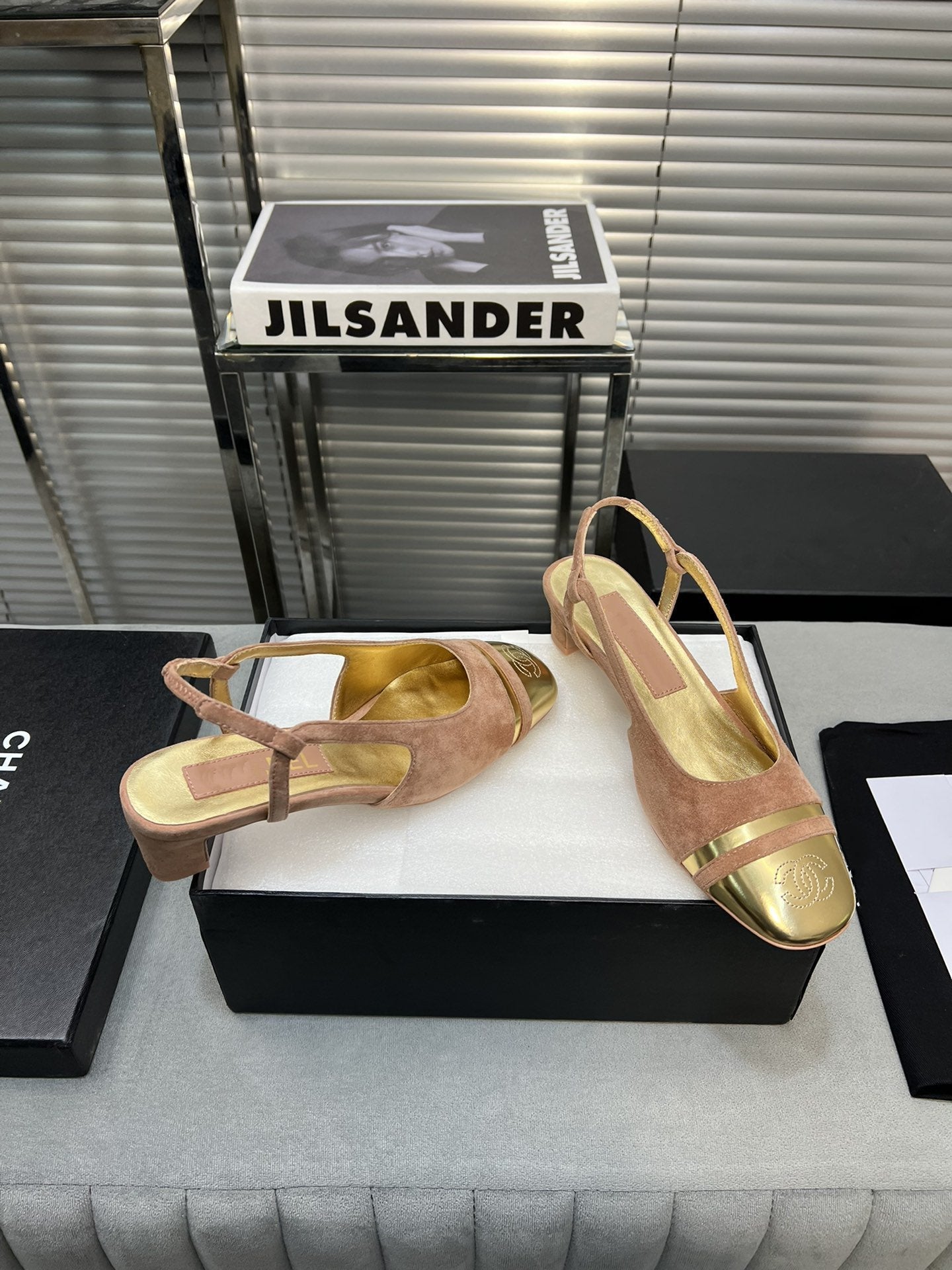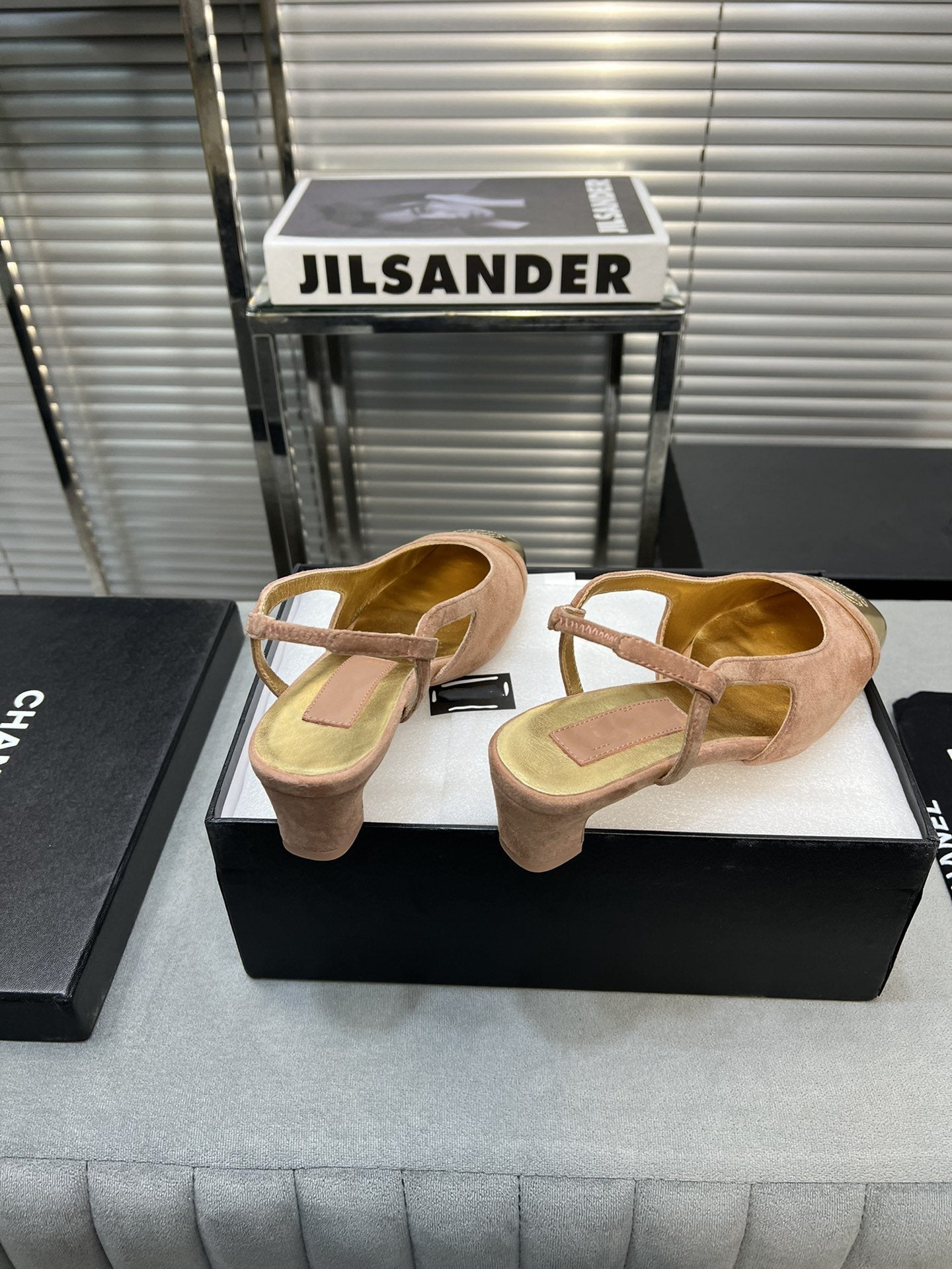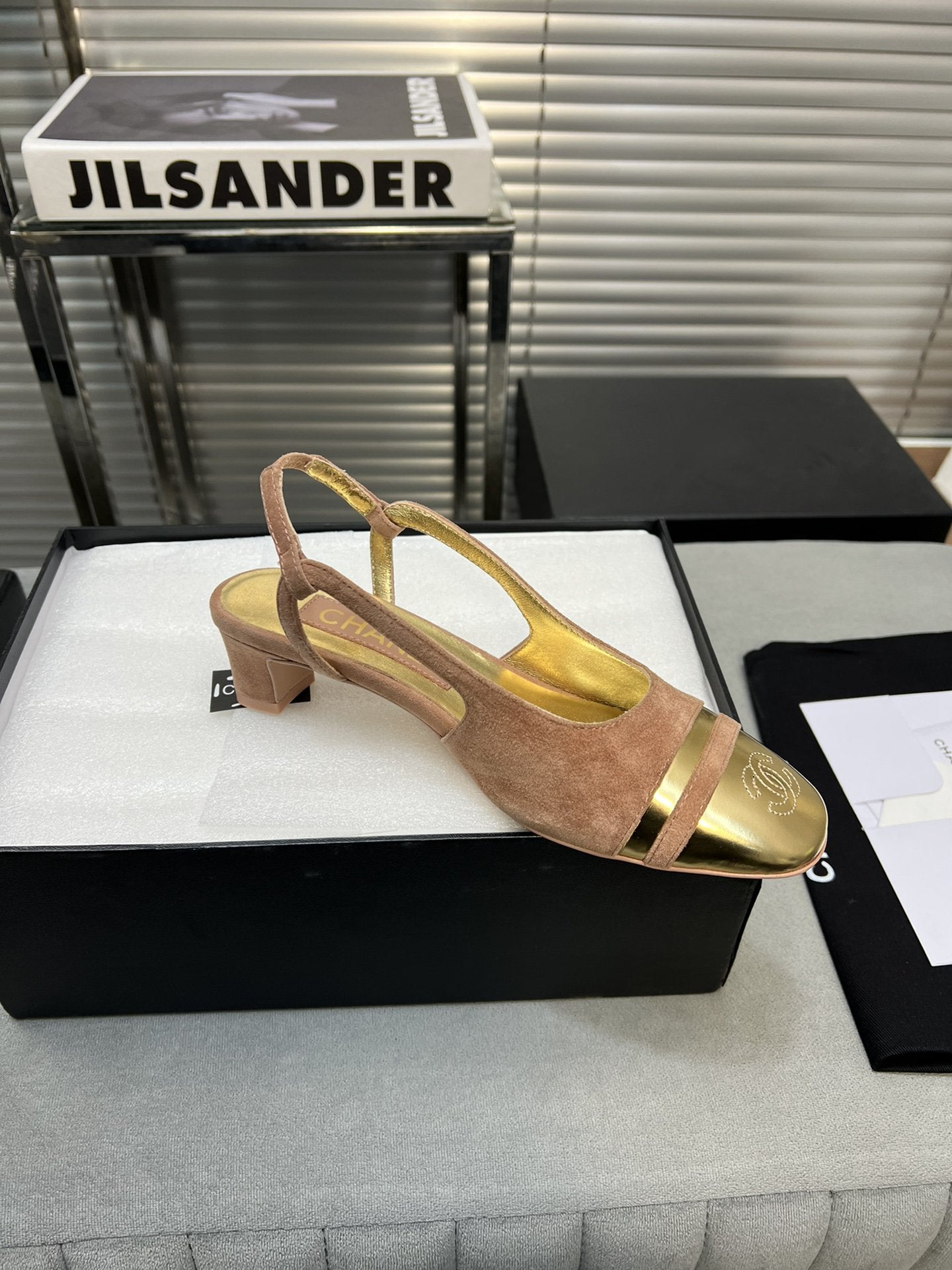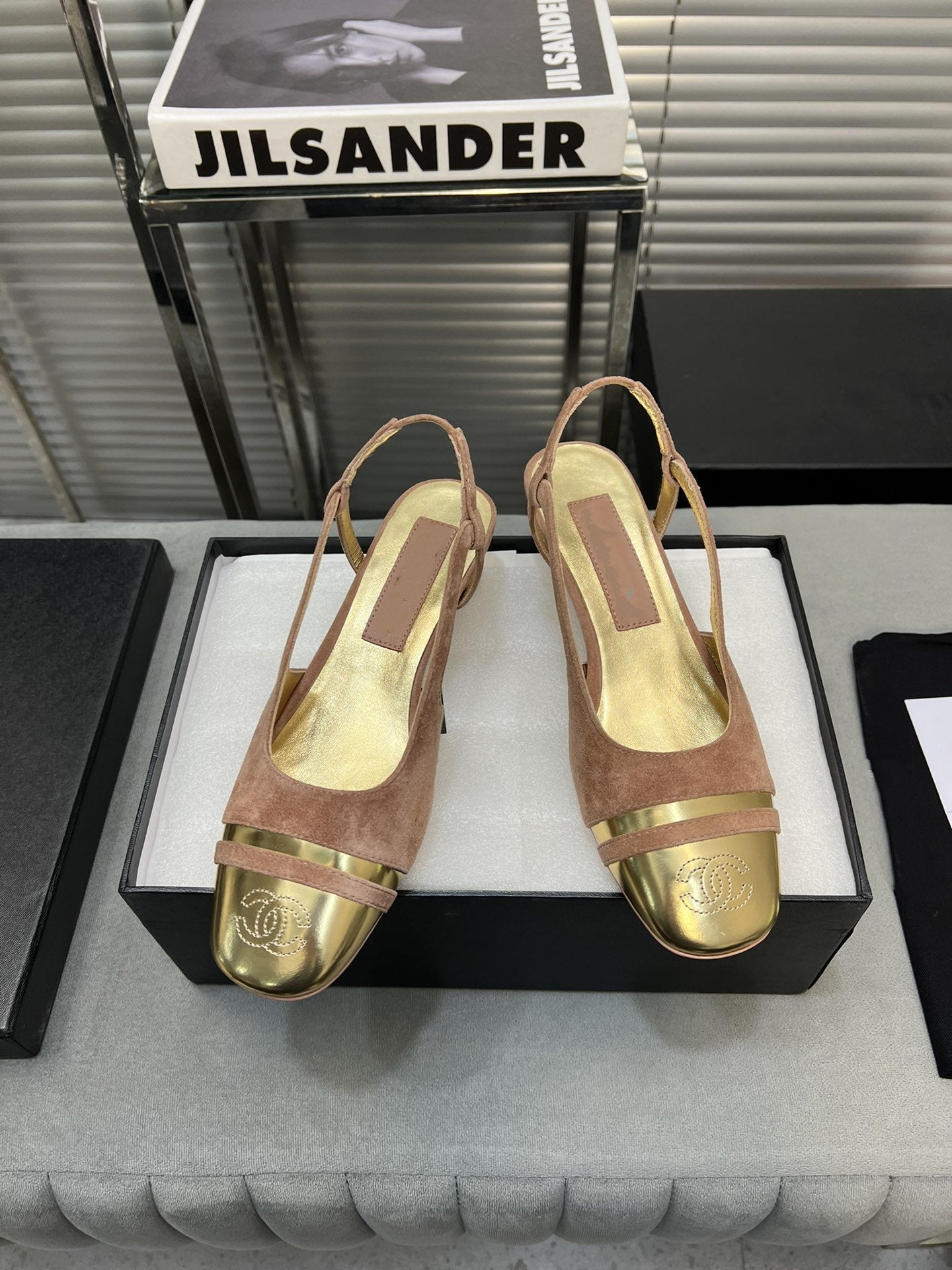 slingback rose suede gold metalic lambskin square toe 5.0