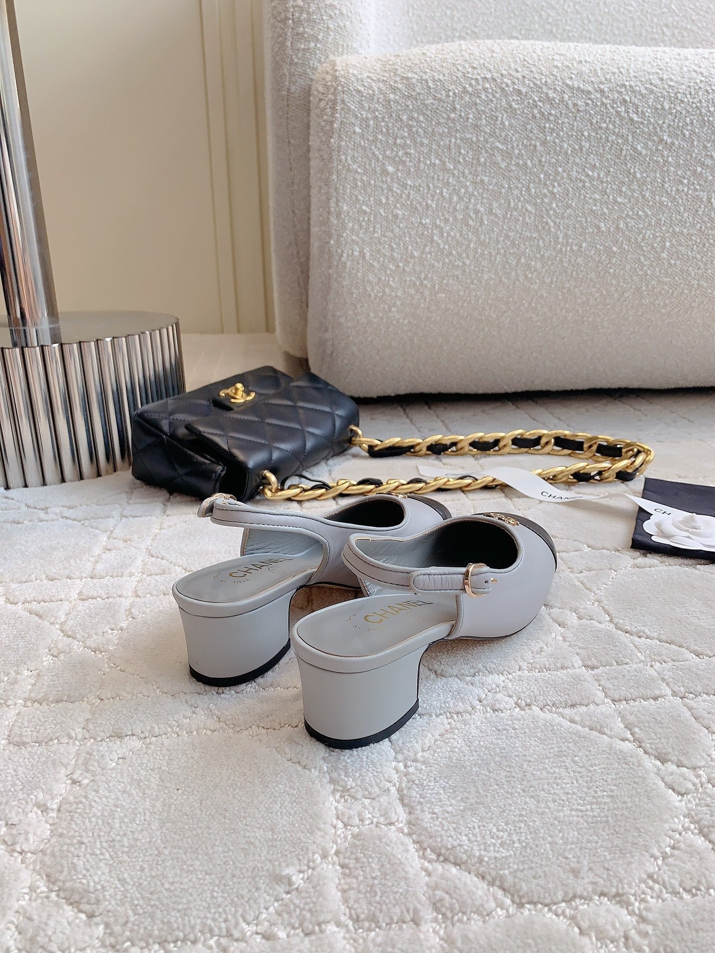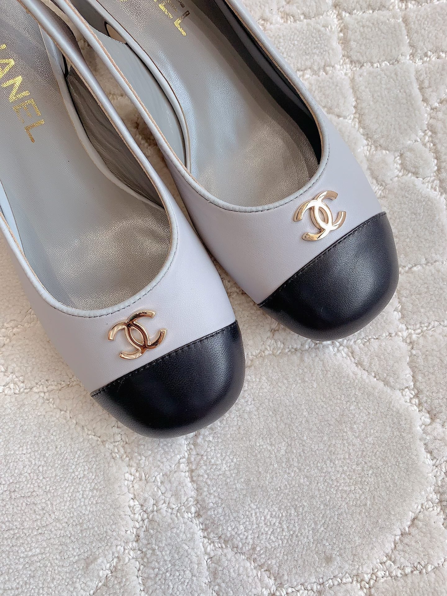 SLINGBACKS IN SLATE GREY MIX BLACK SHEEPSKIN
