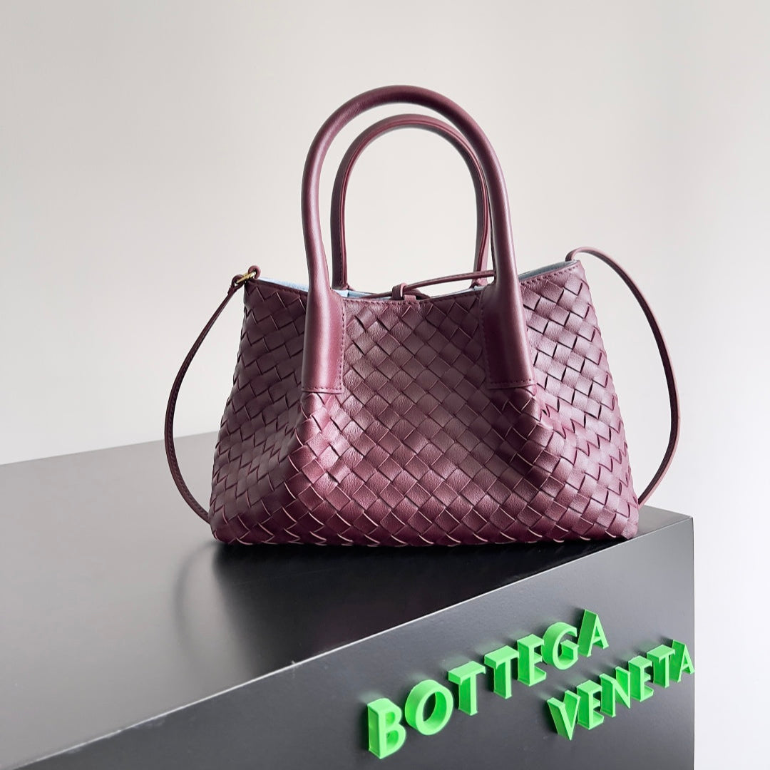 SMALL PINACOTECA REVERSIBLE TOTE BAG 24 IN MADDER BROWN LAMBSKIN AND LIGHT BLUE SUEDE