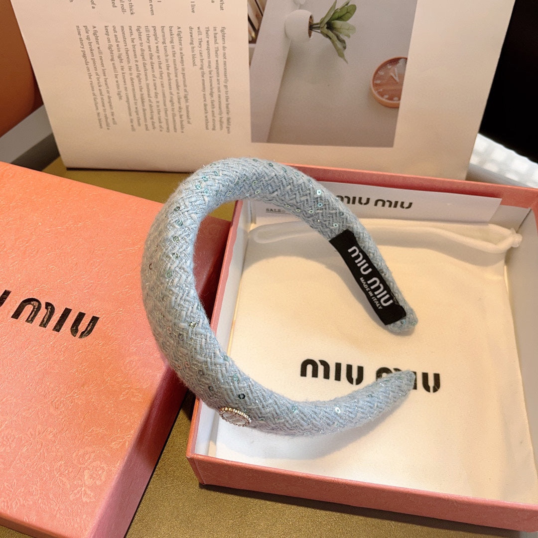 THICK HEADBAND IN SKY BLUE TWEED EMBELLISHED SEQUINS 406044