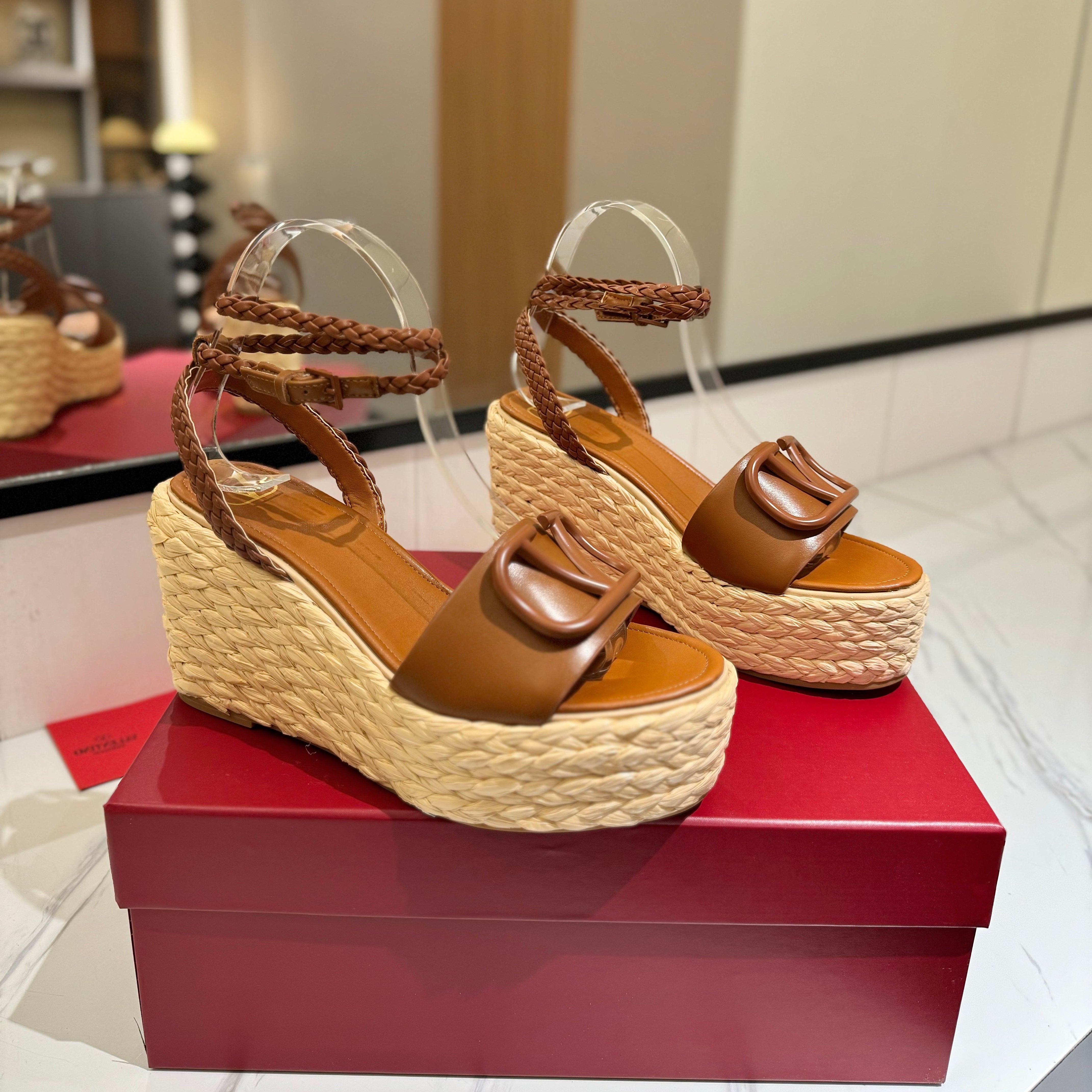 VLTN ESPADRILLE WEDGE SANDALS 25S 90 MM IN BROWN LAMBSKIN STYLE 11