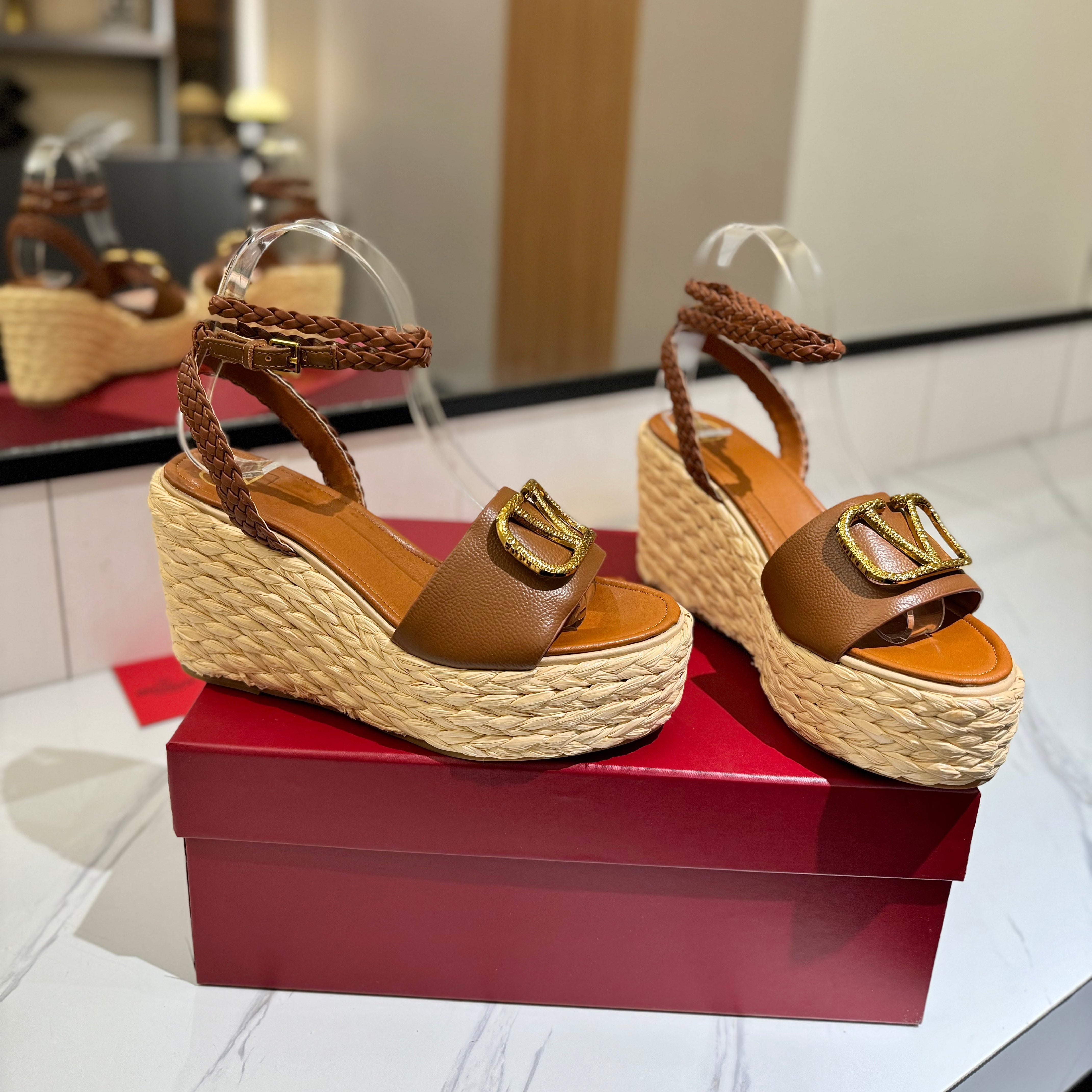 VLTN ESPADRILLE WEDGE SANDALS 25S 90 MM IN BROWN LAMBSKIN STYLE 4