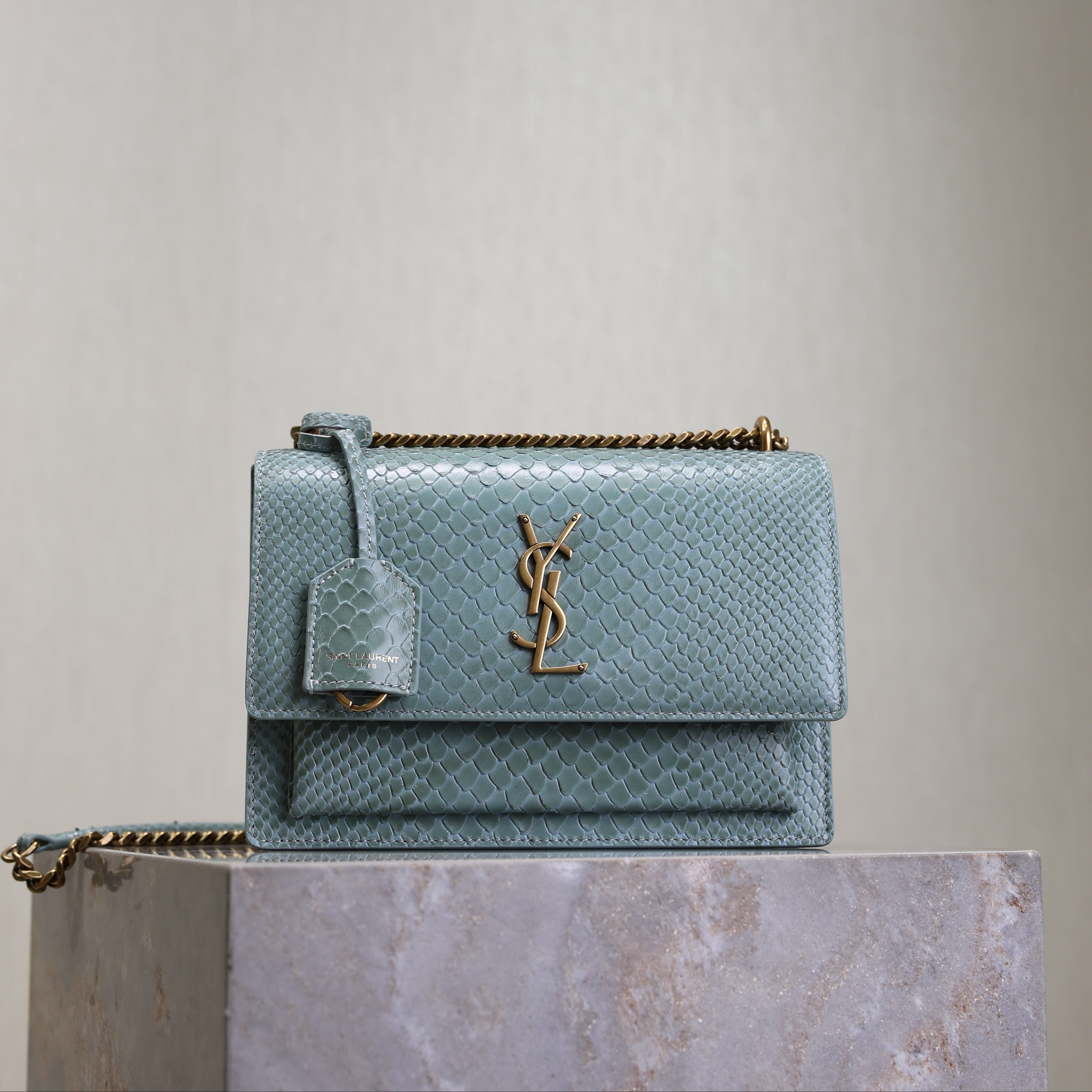 YSL 25S SUNSET MEDIUM 22 IN LIGHT BLUE CROCODILE-EMBOSSED CALFSKIN GOLD HARDWRE